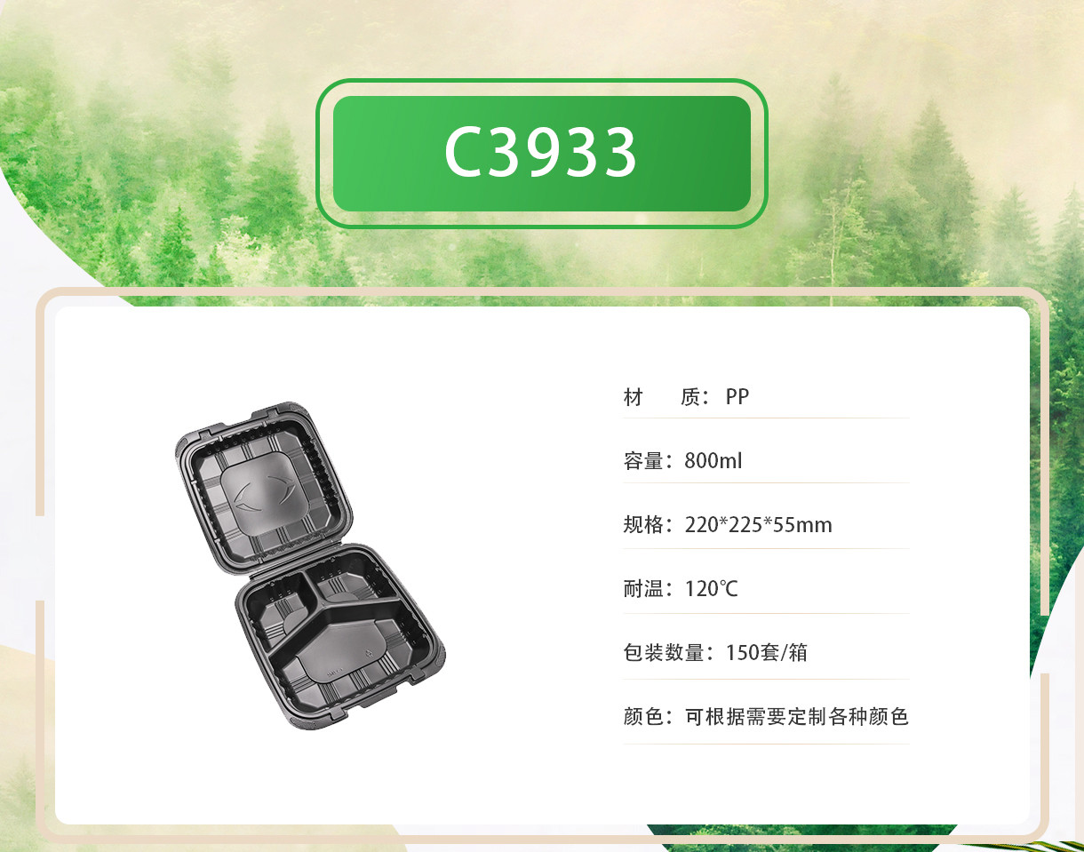 一次性pp饭盒带盖封口黑色方形三格格快餐盒